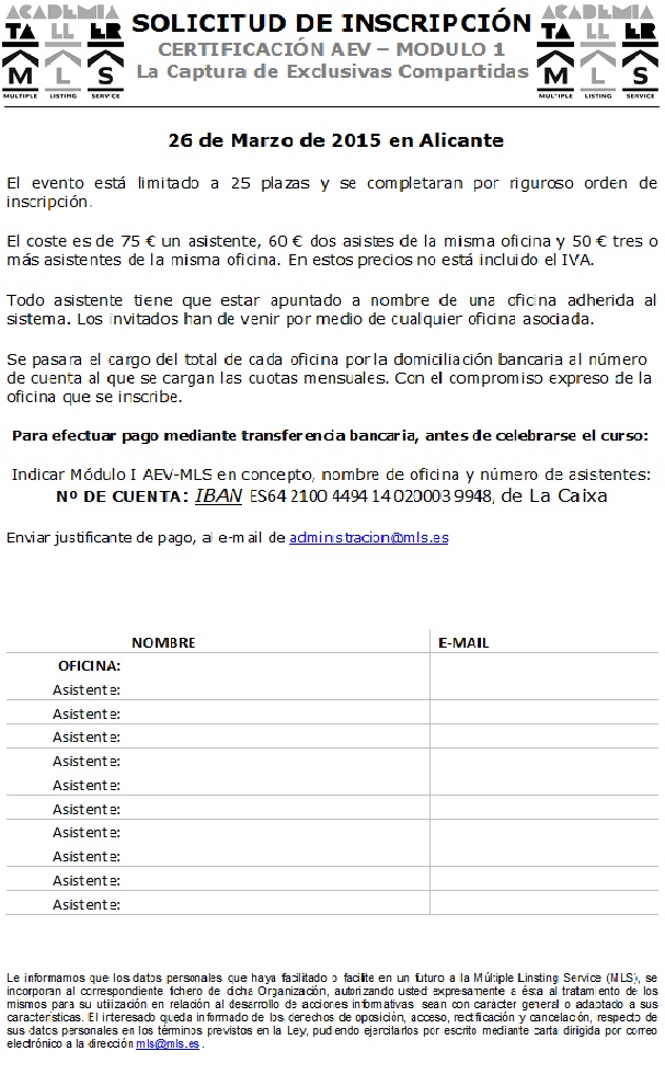 curso mls Publicado el 18 marzo, 2015 a 607 × 980 en ALICANTE HILLS: PRÓXIMO CURSO-TALLER DE CAPTACIÓN EXCLUSIVA DE MLS.